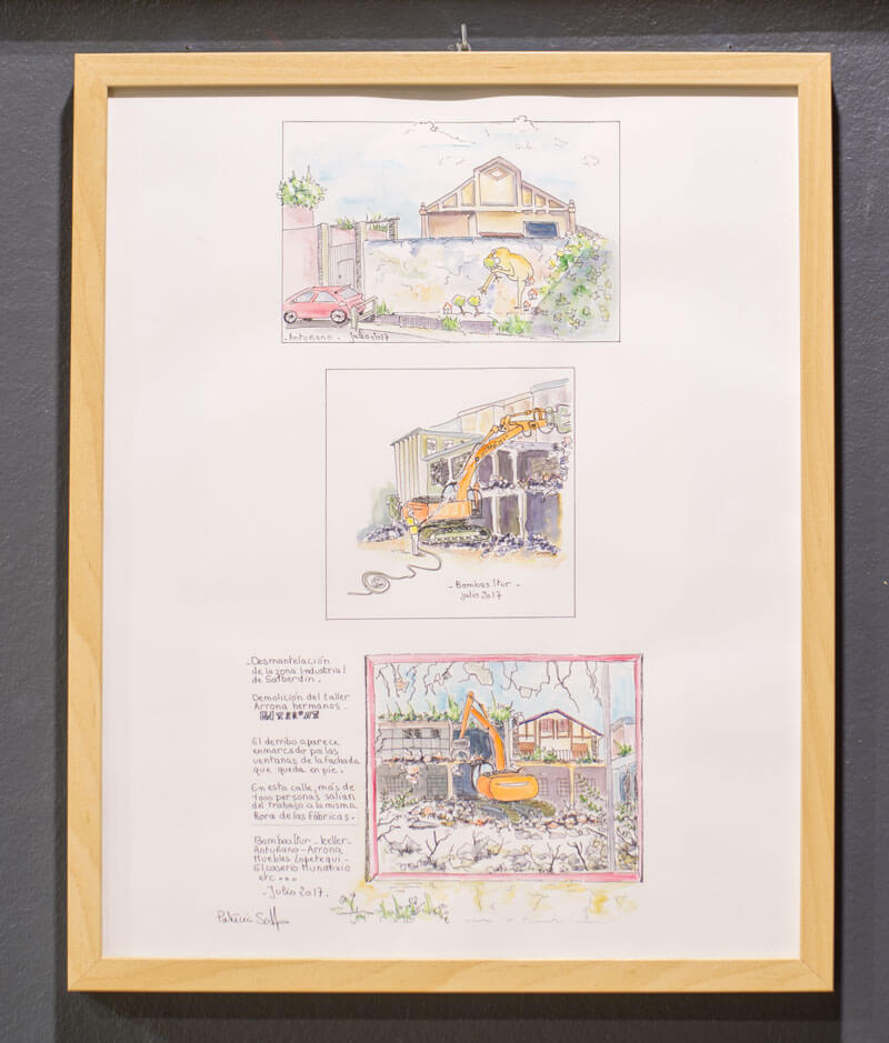 Dibujo en la calle, lo que veo a mi alrededor, capturando ese momento en mi cuaderno. Suelo dibujar sola por falta de aficionados en Zarautz, pero miles de dibujantes urbanos se identifican con los principios de este movimiento que nacio en 2007.